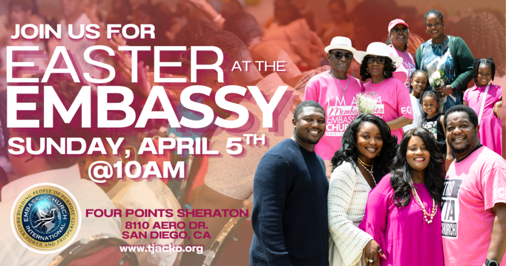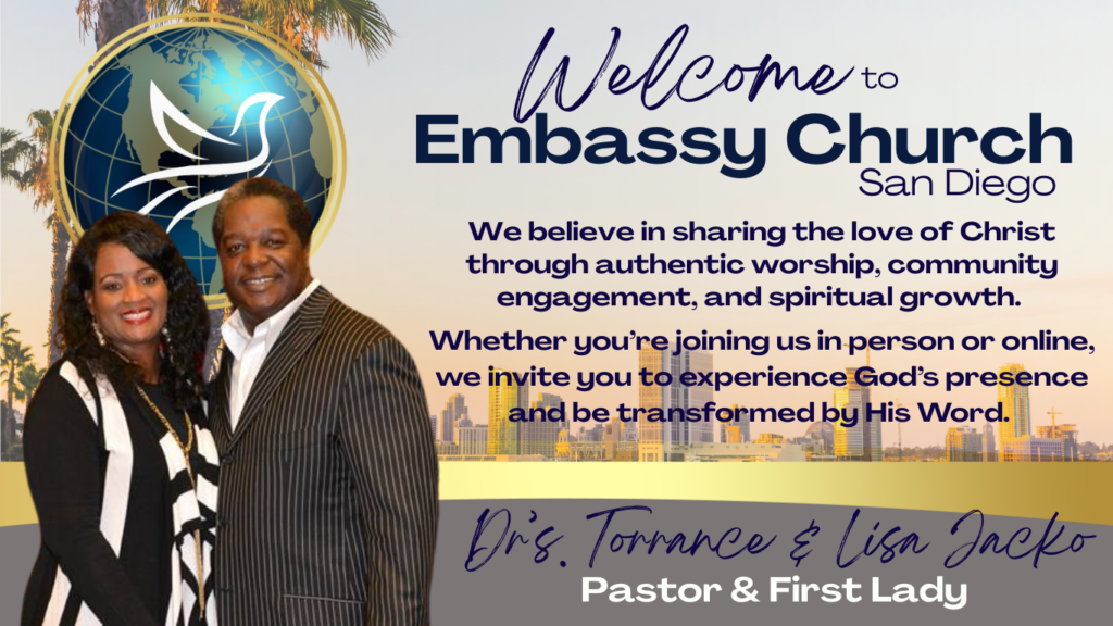 giving made simple using our online platforms when & where to watch the embassy experience Join the embassy sd health experience!(CLICK BELOW) submit prayer request Embassy Church International Address: 8110 Aero Drive San Diego 92123Four Points Hotel Pavilion(619)270-7057EmbassyChurchSanDiego@gmail.com HomeAboutGiveNext StepsMedia ResourcesPrivacy PolicyShipping & Returns Policy Facebook Youtube Instagram X-twitter
