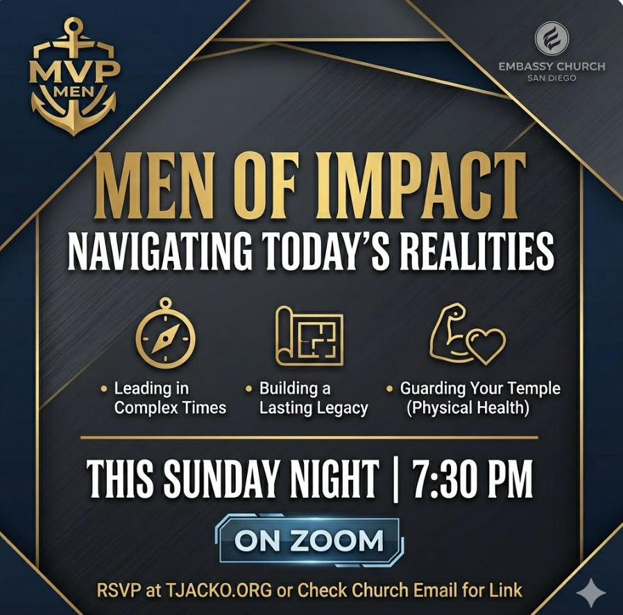 Click here to R.S.V.P. Click here to make your pledge today! giving made simple using our online platforms when & where to watch the embassy experience Join the embassy sd health experience!(CLICK BELOW) submit prayer request Embassy Church International Address: 8110 Aero Drive San Diego 92123Four Points Hotel Pavilion(619)270-7057EmbassyChurchSanDiego@gmail.com HomeAboutGiveNext StepsMedia ResourcesPrivacy PolicyShipping & Returns Policy Facebook Youtube Instagram X-twitter